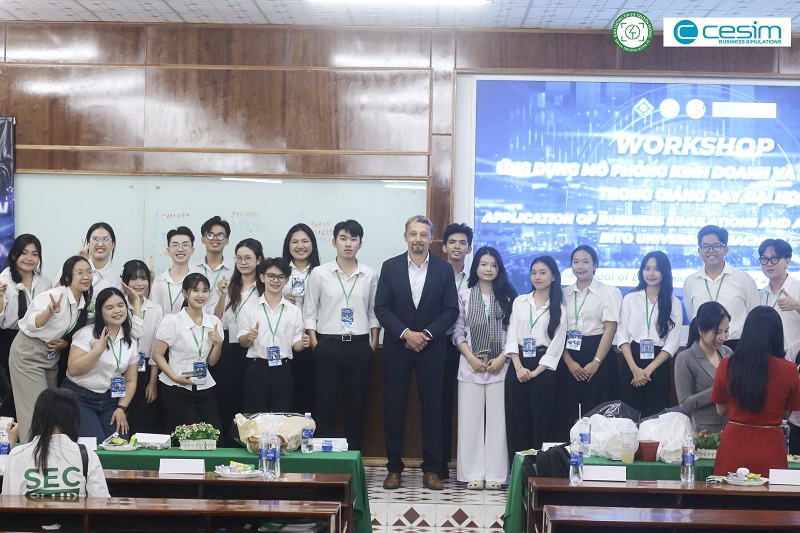 Vào ngày 26/11/2025 tại Hội trường 101 Trường Kinh tế đã diễn ra buổi workshop với chủ đề: “Ứng dụng mô phỏng kinh doanh và tích hợp AI trong giảng dạy Đại học". Buổi workshop đã mang lại trải nghiệm thú vị cho các bạn sinh viên khi được thực hành phần mềm mô phỏng kinh doanh trên máy tính cùng Cesim.
