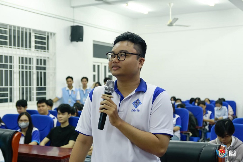 Diễn giả lắng nghe các câu hỏi thắc mắc từ các bạn sinh viên.