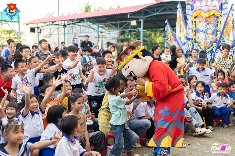 Từ sớm, thầy cô, phụ huynh và các bạn đoàn viên thanh niên tình nguyện đã cùng nhau chuẩn bị quà, bánh trung thu và các tiết mục văn nghệ. Niềm vui giản dị, nụ cười tươi sáng của các em đã làm nên bầu không khí đoàn kết, chan chứa tình cảm.