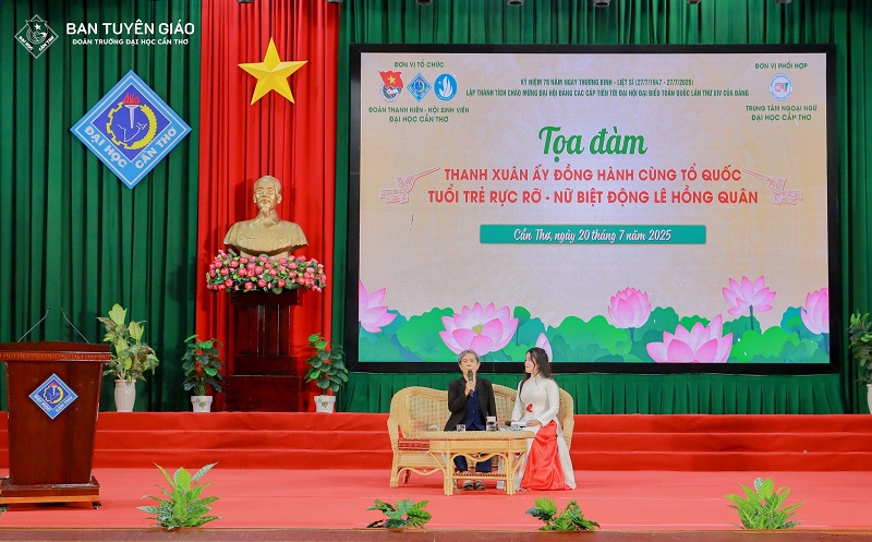 Mở đầu chương trình Giao lưu tiếp lửa truyền thống với chủ đề “Tuổi trẻ Đại học Cần Thơ - Viết tiếp bản hùng ca bất diệt” là Tọa đàm “Thanh xuân ấy đồng hành cùng Tổ quốc Tuổi trẻ rực rỡ - Nữ biệt động Lê Hồng Quân”, Cô đã chia sẻ những kỷ niệm tuổi trẻ đồng hành cùng Tổ quốc, những tháng năm gian khổ nhưng đầy tự hào. Những câu chuyện sống động, chân thật, hào hùng, quả cảm, gan dạ, sẵn sàng chiến đấu và hy sinh vì độc lập, tự do của Tổ quốc đã hun đúc trong thế hệ trẻ Đại học Cần Thơ niềm tự hào dân tộc, ý chí kiên cường và trách nhiệm cống hiến vì cộng đồng.