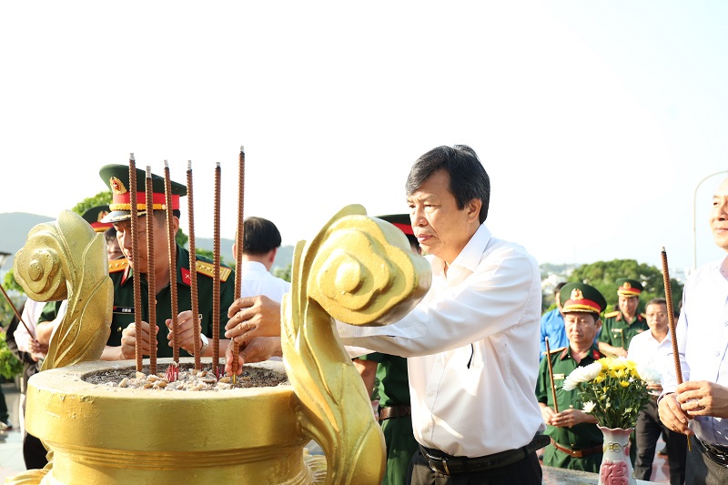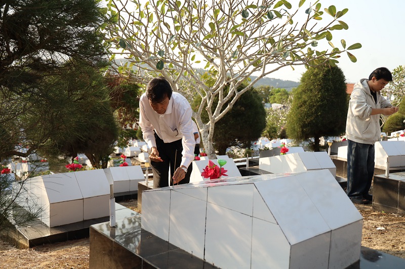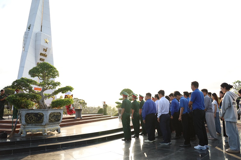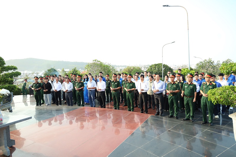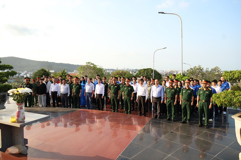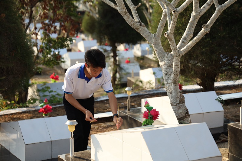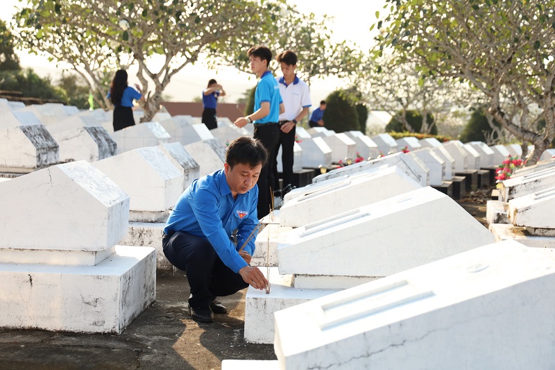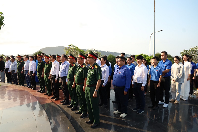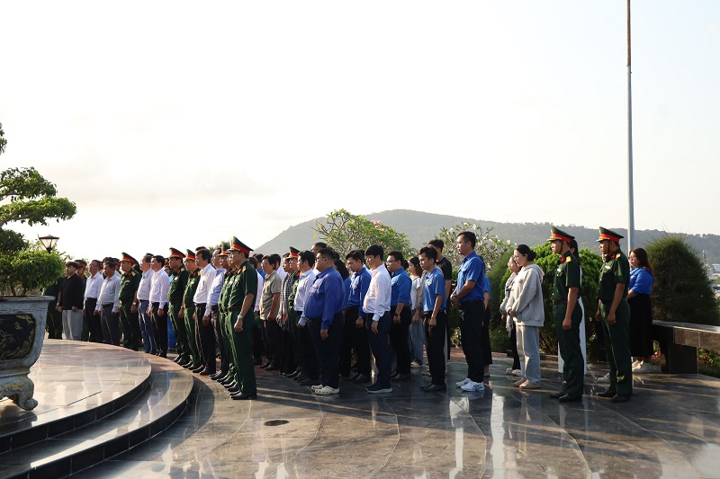 Tại Nghĩa trang Liệt sĩ Phú Quốc, trong không khí trang nghiêm và thành kính, đoàn đã tổ chức lễ dâng hương, dâng hoa và dành phút mặc niệm nhằm tưởng nhớ công lao to lớn của các anh hùng liệt sĩ – những người con ưu tú của dân tộc đã không tiếc máu xương, hy sinh vì sự nghiệp đấu tranh giải phóng dân tộc, thống nhất đất nước và bảo vệ Tổ quốc. Trước anh linh các anh hùng liệt sĩ, mỗi đoàn viên, sinh viên càng thêm xúc động, bày tỏ lòng biết ơn sâu sắc và ý thức rõ hơn về trách nhiệm của thế hệ trẻ hôm nay trong việc gìn giữ, phát huy những giá trị lịch sử thiêng liêng của dân tộc.