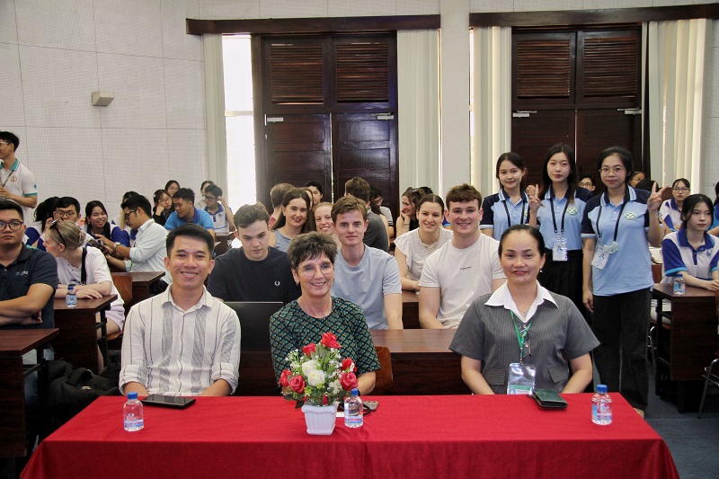 Các bạn sinh viên Trường Nông nghiệp chụp ảnh lưu niệm cùng đoàn sinh viên Hà Lan.