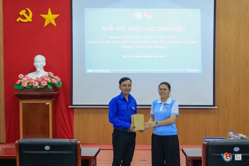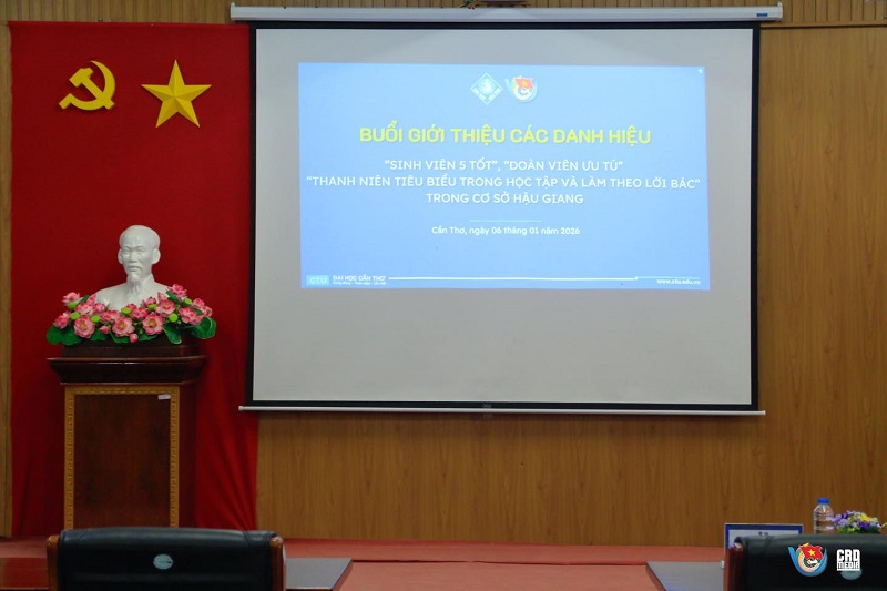 Chiều ngày 06/01/2025, tại Cơ sở Hậu Giang - Đại học Cần Thơ, Ban Chấp hành Đoàn TNCS Hồ Chí Minh Cơ sở Hậu Giang đã tổ chức thành công Buổi giới thiệu các danh hiệu “Sinh viên 5 tốt”, “Đoàn viên ưu tú” và “Thanh niên tiêu biểu trong học tập và làm theo lời Bác”. Chương trình là hoạt động trọng điểm nhằm hiện thực hóa kế hoạch công tác Đoàn và phong trào thanh niên năm học 2025 – 2026.