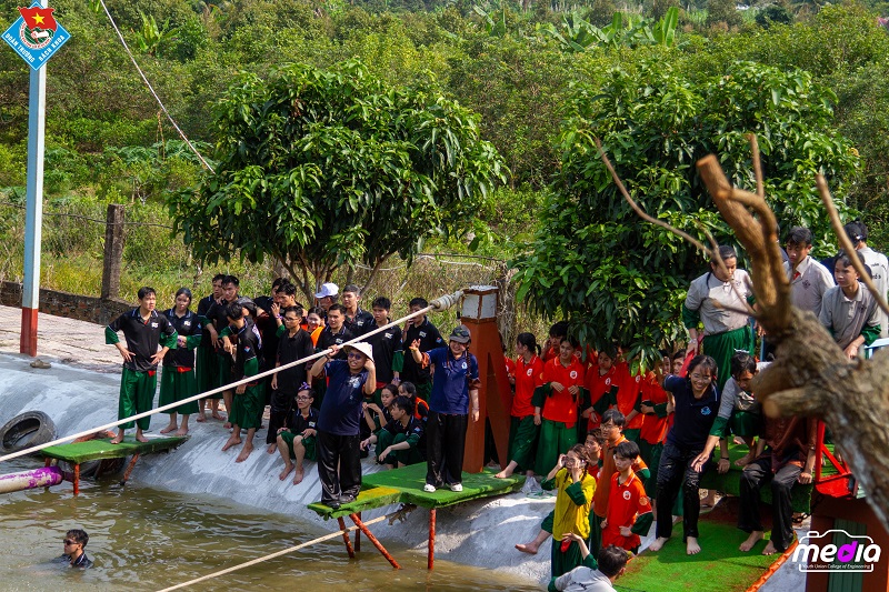 Vào buổi chiều cùng ngày, các bạn học viên cùng nhau di chuyển đến Làng du lịch sinh thái Đá Nổi để tham gia các trò chơi lớn tinh thần đồng đội, khả năng phối hợp và sự linh hoạt của sinh viên được phát huy rõ nét, tạo nên những khoảnh khắc vừa thử thách vừa đáng nhớ.