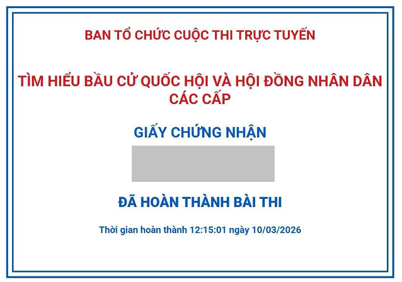 - Thí sinh dự thi sử dụng các thiết bị điện tử có kết nối Internet để tham gia Cuộc thi, truy cập vào đường link: https://thitructuyen.baocaovien.vn/lam-bai-kiem-tra/tim-hieu-bau-cu-quoc-hoi-va-hdnd